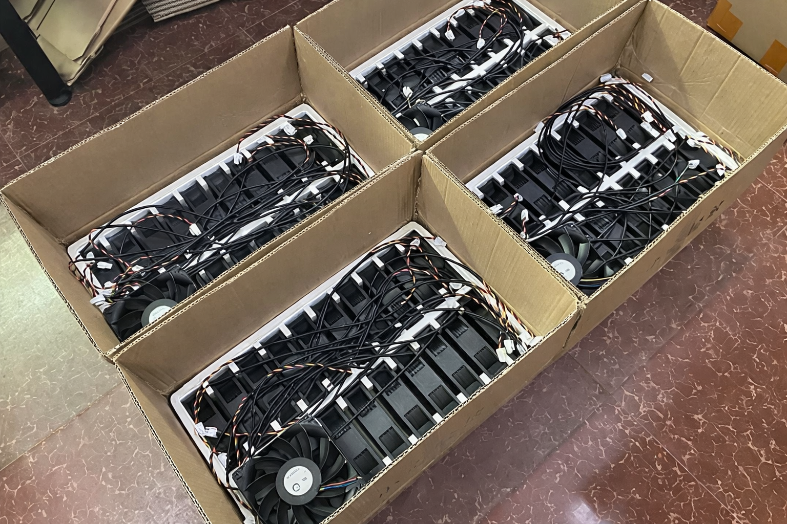 Yeh fans 6000 RPM aur 7000 RPM high-speed operation ke saath strong airflow generate karte hain jo hashboards aur internal components ka temperature control me rakhte hain. Isse overheating kam hoti hai aur miner stable performance deta hai.